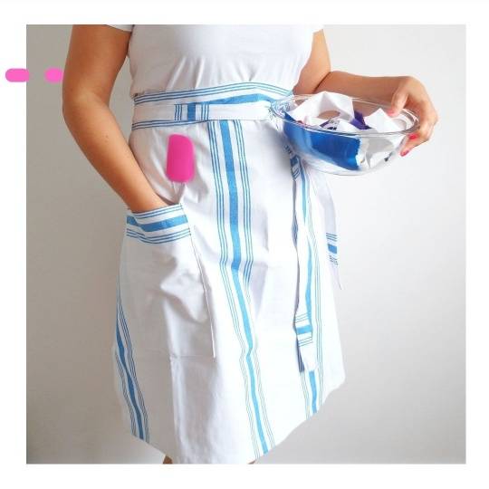 Este molde de faldón de cocina tiene video tutorial paso a paso de regalo para su confección.